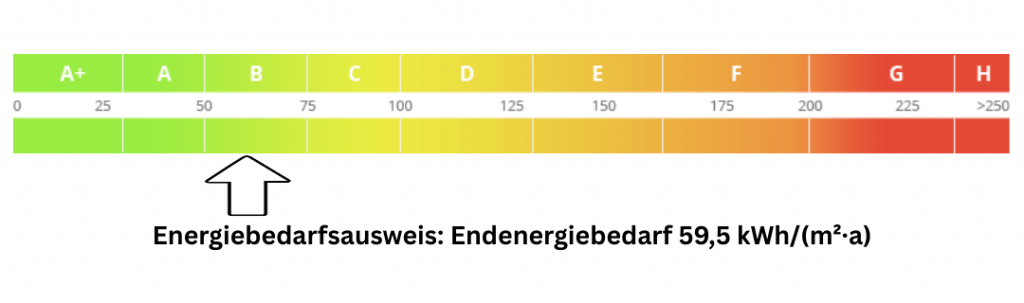 - Energiebedarfsausweis: Endenergiebedarf 59,5 kWh/(m²·a)